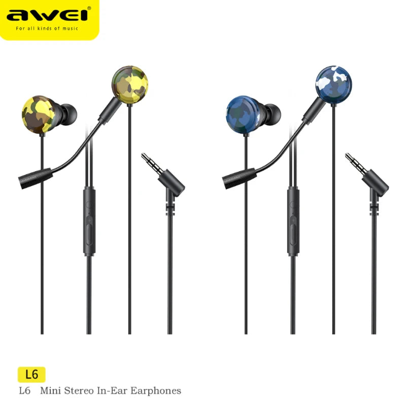 AWEI L6 cuffie cablate da 3.5mm nell'orecchio cuffie sportive auricolari cablati con microfono auricolari Stereo bassi controllo di linea per telefoni