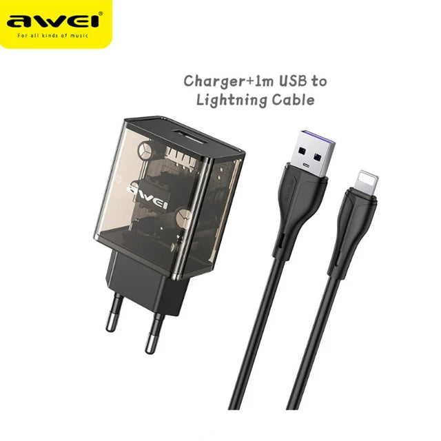 CARICATORE AWEI C9 DA 2.4A + CAVO USB TO LIGHTNING/TYPE-C/MICRO-USB